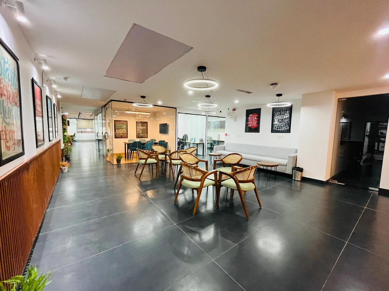 Our spaces come packed with essential and premium features designed to elevate your work experience. Enjoy high-speed, reliable internet, ergonomic furniture, and fully equipped meeting rooms for seamless collaboration. Benefit from access control and 24/7 availability for flexible working hours. Additional amenities include communal lounges, phone booths for privacy, on-site cafes, and wellness areas. From private cabins to shared desks, every feature supports productivity, comfort, and a thriving professional community. Whether you need a hot desk, dedicated workspace, or virtual office services, our offerings are tailored to meet diverse business needs